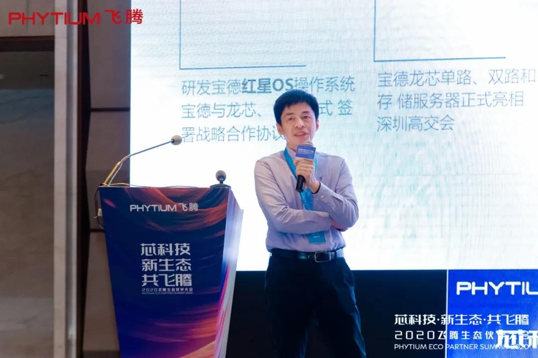 大会同期举行了四个分论坛,主题囊括政务办公、金融电信、工业控制及信息化、人工智能等领域。飞腾携多家合作伙伴,分享典型案例,交流生态伙伴的创新成果和发展规划。宝德研究院院长兼网安BU总经理黄瑱在AI硬件产品论坛中发表《宝德计算,加速飞腾》主题演讲。