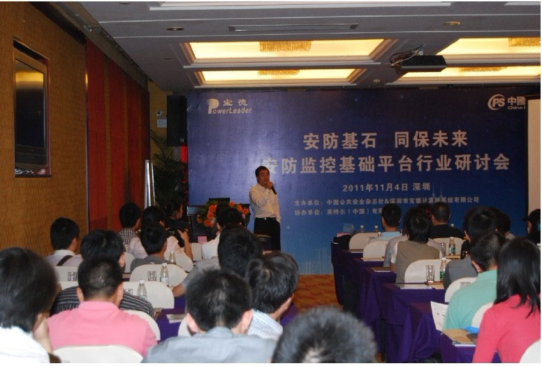 本次会议由中国公共安全杂志社和深圳市宝德计算机系统有限公司主办,英特尔(中国)有限公司协办。深圳市宝德计算机系统有限公司总经理程佶先生、《中国公共安全》杂志社社长助理、深圳市安防协会秘书长邓文杰先生分别为大会致辞,宝德解决方案部经理李强介绍了安防监控行业产品及解决方案,宝德行业拓展经理陈翔讲解了宝德在安防监控行业的定位和对安防监控行业的市场规划,宝德存储产品经理彭树红先生就宝德存储在安防监控行业的应用做了详细的介绍,安防监控企业代表信义科技常务副总袁道仁讲解了实际应用案例,并对宝德服务器在信义科技2011年大运会安保项目中的出色表现表示赞赏和感谢。会议还展示了MSS监控存储服务器、DVR系列工控机、MS监控服务器、IPSAN存储系统等安防新品。