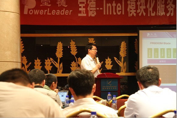 会议开始由宝德华北营销中心总监秦良亮先生为大会致辞,秦总简要介绍了宝德2012年这半年以来所取得的成绩和期待与更多客户携手共赢的美好愿望。宝德天津平台经理张光辉先生随后对于宝德全系列云计算产品进行详细的汇报。本次会议得到了英特尔的大力支持,英特尔技术专家肖扬先生亲临现场为来宾详细讲解模块化服务器PR6000M的设计初衷、产品特色、产品优势和应用场景,使得来宾对模块化服务器有了全方位的认识和理解,并产生了一定的认同。最后,宝德张光辉为来宾做了“宝德PR6000M助力虚拟化应用和中小企业私有云的搭建”的演讲,从虚拟化和云计算的应用领域阐述了宝德PR6000M的应用特色,以及宝德在云计算领域的探索和成绩,得到了与会来宾的一致认可。