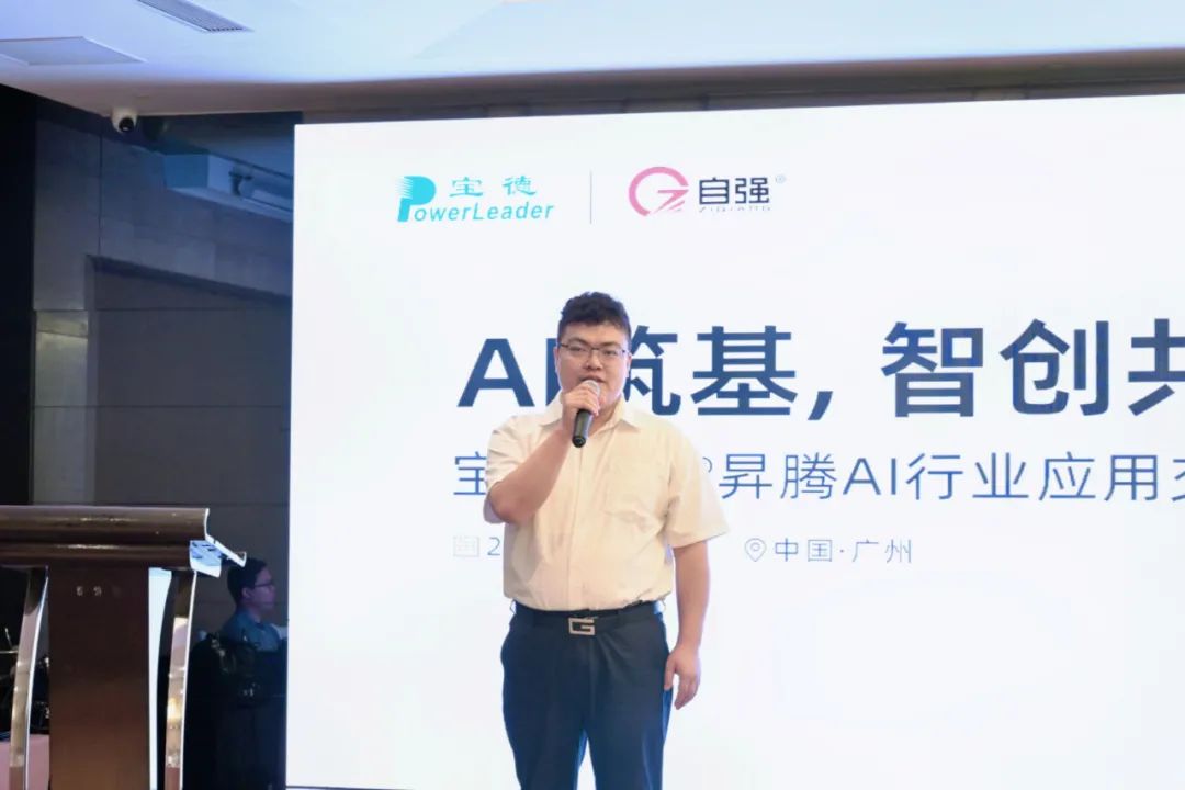 广东软件行业协会、广东省信息技术应用创新产业联盟负责人到会讲话。她表示,以大模型为代表的人工智能技术,已成为数字经济高质量发展的新引擎。广东依托珠三角电子信息产业优势,已形成较完善的人工智能企业创新矩阵,实现从底层硬件到上层应用的完整产业生态,并在智能制造、智慧城市、惠民服务等领域取得显著成效。未来,广东将聚焦自主核心算法突破、场景价值深耕、生态体系构建三大路径,推动新型基础设施发展,促进AI技术与实体经济的深度融合。联盟将持续发挥桥梁纽带作用,推动政策协同、资源融通与创新要素对接,与宝德、华为等企业共同携手,以生态合力激活AI潜能,共同助力广东数字经济高质量发展。